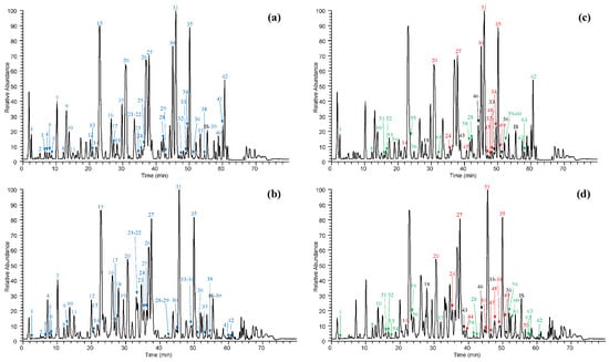 3.2. Semi-Quantitative Analysis of the Identified Metabolites