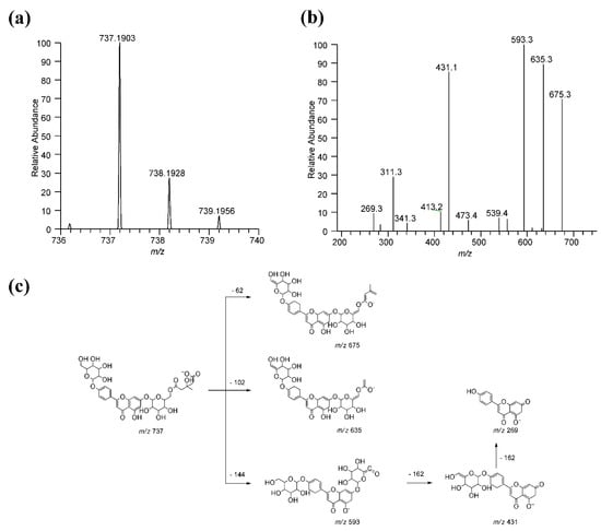 | 315-glucoside-O-HMG (1) | 39.0 | 621.1450 | 300-315-477-519-559-579 | C28H30O16 | −0.018 | |