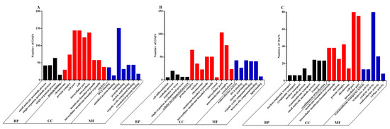 The 20 most enriched terms of differentially abundant proteins (DAPs) by Gene Ontology (GO) analysis between the CON and LP groups on days 0 (A), 5 (B) and 7 (C). BP, biological process; CC, cellular component; MF, molecular function. DAPs: differentially abundant proteins.