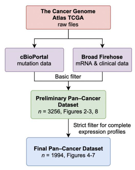 - Chang, K.; Creighton, C.J.; Davis, C.; Donehower, L.; Drummond, J.; Wheeler, D.; Ally, A.; Balasundaram, M.; Briol, I.; Butterfield, S.N.; et al. The Cancer Genome Atlas Pan-Cancer analysis project. Nat. Genet. 2013, 45, 1113–1120. [Google Scholar] [CrossRef]