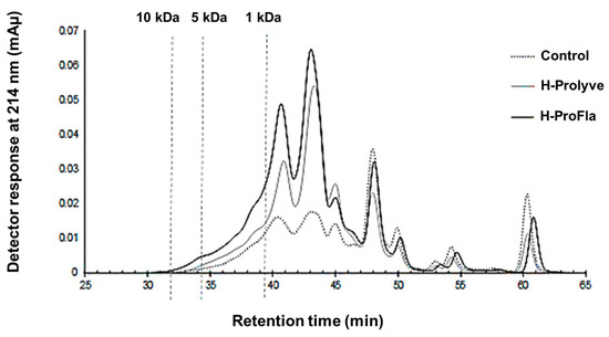 3.2. Peptide Profile and Molecular Mass Distribution