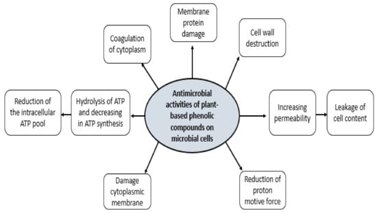 Antimicrobial activities of plant-based phenolic compound on microbial cells.