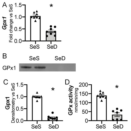 3.4. Neonatal Hepatic Glutathione Peroxidase 1 (Gpx1) Is Decreased after Antenatal Se Deficiency