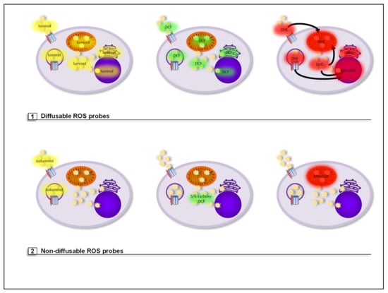 5.2. Nondiffusable ROS Probes (Compartment-Specific ROS Detection)