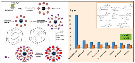 - Alipour, S.; Aberoomand, P.; Waqif, S.; Reza, H. Determination of Rosmarinic Acid in Plant Extracts Using a Modified Sensor Based on Magnetic Imprinted Polymeric Nanostructures. Sens. Actuators B Chem. 2020, 323, 128668. [Google Scholar] [CrossRef]