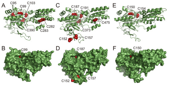 3.4. Mutations of Conserved Cys Modify Enzyme Activity