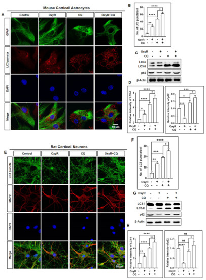 3.1. OxyR Treatment Activates Autophagic Flux in Mouse Cortical Astrocytes and Rat Cortical Neurons
