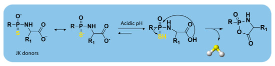 Kang and co-workers observed that these donors undergo a new hydrolysis mechanism of release. The protonation of phosphonamidothioates leads to the formation of the corresponding phosphorothiols, which cyclize via nucleophilic addition of the carboxylic acid group, resulting in breakage of the P-S bond and in release of H2S (Figure 8).