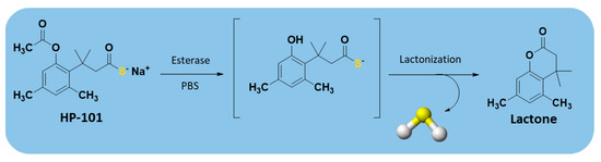 Although their H2S-releasing mechanism is still not completely defined, it is widely accepted that the production of H2S from DTTs occurs via hydrolysis [34,116,117] (Figure S7). Indeed, it has been demonstrated that upon heating to 120 °C in aqueous solution, dithiolethione derivatives gradually release H2S, converting into the corresponding 1,2-dithiole-3-one [39].