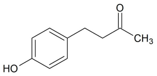 - Opdyke, D.L.J. 4-(p-Hydroxyphenyl)-2-Butanone. Food Cosmet. Toxicol. 1978, 16, 781–782. [Google Scholar] [CrossRef]