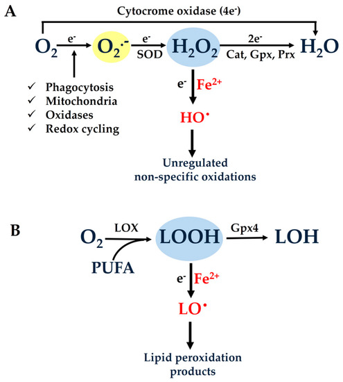 Figure 1B). A specific membrane-bound “glutathione peroxidase 4” (Gpx4) is responsible for the removal of excess LOOHs [