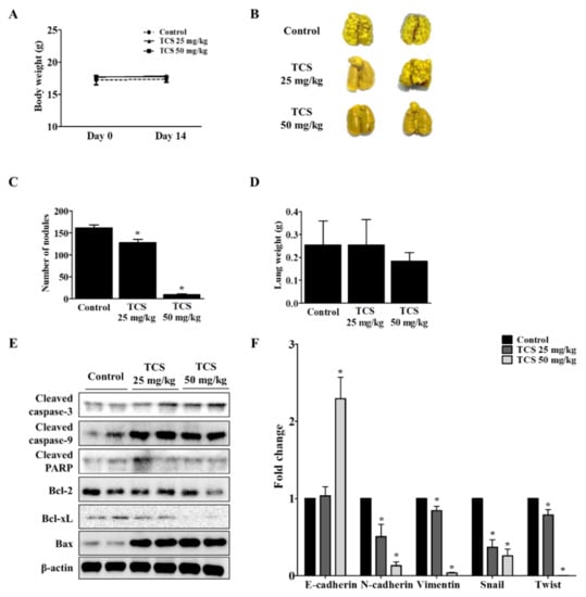 3.7. TCS Inhibits Lung Metastasis of CT26 cells in a Mouse Model