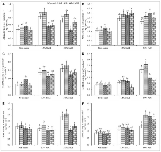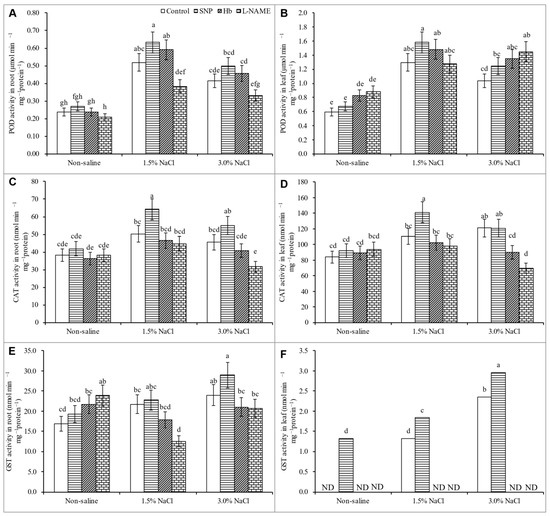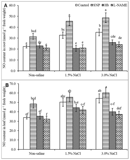 - Huang, J.; Zhu, C.; Hussain, S.; Huang, J.; Liang, Q.; Zhu, L.; Cao, X.; Kong, Y.; Li, Y.; Wang, L.; et al. Effects of nitric oxide on nitrogen metabolism and the salt resistance of rice (Oryza sativa L.) seedlings with different salt tolerances. Plant Physiol. Biochem. 2020, 155, 374–383. [Google Scholar] [CrossRef]
