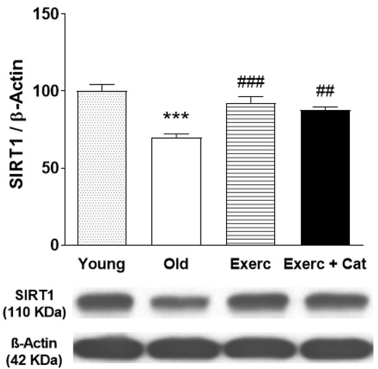 - Marton, O.; Koltai, E.; Nyakas, C.; Bakonyi, T.; Zenteno-Savin, T.; Kumagai, S.; Goto, S.; Radak, Z. Aging and exercise affect the level of protein acetylation and SIRT1 activity in cerebellum of male rats. Biogerontology 2010, 11, 679–686. [Google Scholar] [CrossRef]