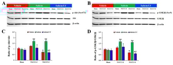 In the salicin/LY-TI group, on the other hand, the changes of the protein levels of phosphor-Akt and phosphor-GSK3β after TI were very similar to those in the vehicle-TI group.