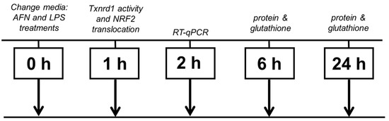 Murine alveolar macrophages (MH-S; ATCC, CRL-2019) were maintained in RPMI media supplemented with 10% FBS, 8 mM glutamine, and penicillin/streptomycin (10,000 U). Cells were plated at equal densities. Our previous studies reported that 0.5 µM AFN (A6733, Sigma Aldrich, St. Louis, MO, USA) decreased Txnrd1 activity to less than 10% in the absence of toxicity 0 [2]. Thus, a concentration of 0.5 μM AFN was used for all further studies.