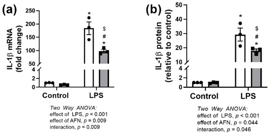 3.1. Effects of LPS and/or AFN on IL-1β Expression