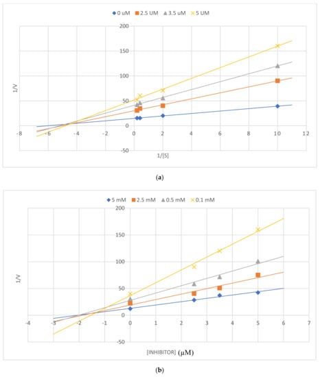 2.7. Enzyme Kinetic Studies of 2a and 3b against AChE, BChE, and β-Secretase
