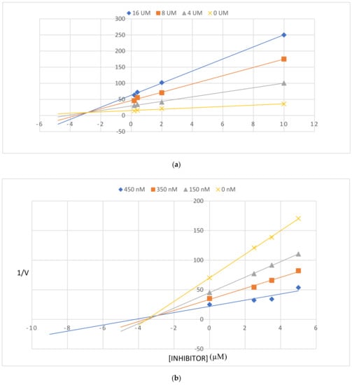2.7.1. Enzyme Kinetic Studies of 2a and 3b against AChE and BChE