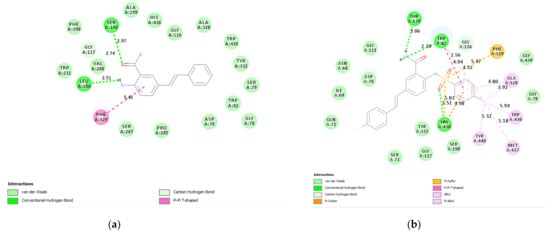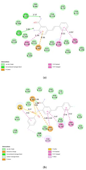 3.6.1. Docking of 2a and 3b into Cholinesterase Enzyme (AChE and BChE) Binding Sites