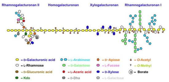 - Mohnen, D. Pectin structure and biosynthesis. Curr. Opin. Plant Biol. 2008, 11, 266–277. [Google Scholar] [CrossRef] [PubMed]