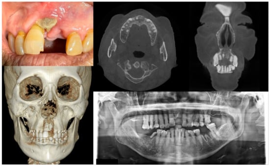 - Khan, A.A.; Morrison, A.; Hanley, D.A.; Felsenberg, D.; McCauley, L.K.; O’Ryan, F.; Reid, I.R.; Ruggiero, S.L.; Taguchi, A.; Tetradis, S.; et al. Diagnosis and management of osteonecrosis of the jaw: A systematic review and international consensus. J. Bone Miner. Res. 2015, 30, 3–23. [Google Scholar] [CrossRef]