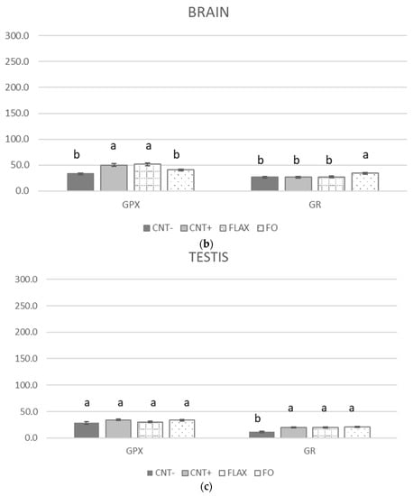 3.1. Oxidative Status and Antioxidant Content of Organs
