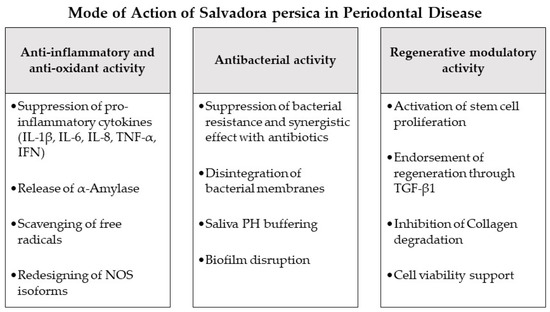 4. Modes of Action of Salvadora persica as Potential Adjuncts during Periodontal Therapy and in Periodontitis-Associated Settings