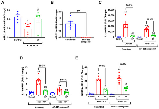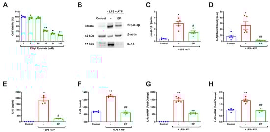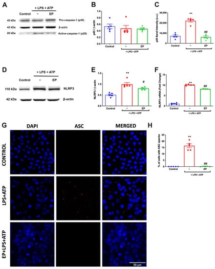 3.1. EP Decreased IL-1β and IL-18 on Both mRNA and Protein Levels