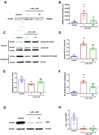 3.5. EP Reduced NF-κB Activation and HMGB1 Expression Level