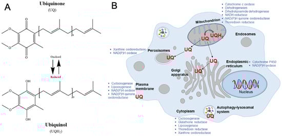 - Ernster, L.; Dallner, G. Biochemical, physiological and medical aspects of ubiquinone function. Biochim. Biophys. Acta (BBA)—Mol. Basis Dis. 1995, 1271, 195–204. [Google Scholar] [CrossRef]