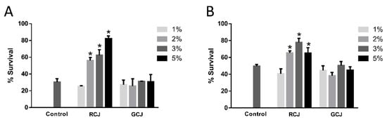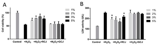 2.9. RCJ and GCJ Pre-Treatment and H2O2-Induced Oxidative Injury Model