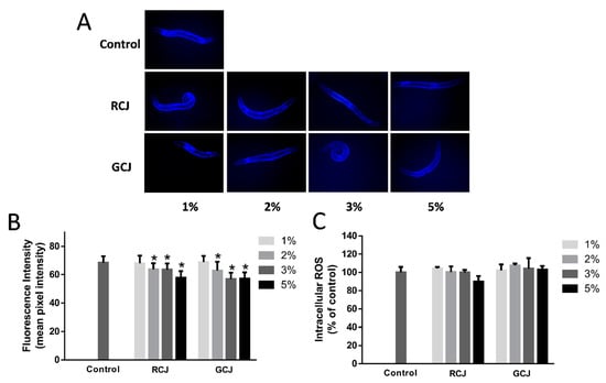 3.5. RCJ and GCJ Attenuated Autofluorescence Accumulation but Do Not Affected ROS Level
