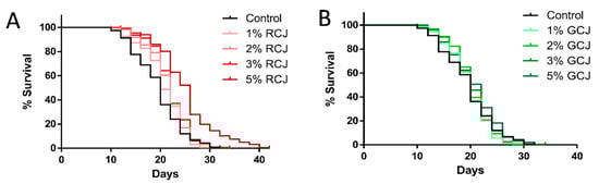 3.7. RCJ Extend the Lifespan of Wild-Type C. elegans