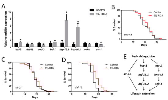 - Guha, S.; Cao, M.; Kane, R.M.; Savino, A.M.; Zou, S.; Dong, Y. The longevity effect of cranberry extract in Caenorhabditis elegans is modulated by daf-16 and osr-1. Age 2013, 35, 1559–1574. [Google Scholar] [CrossRef]