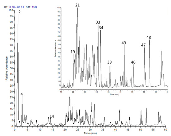 LC-MS profile of H. abyssinica leaves methanolic extract.