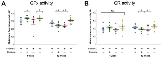 3.4. Glutathione Peroxidase and Reductase