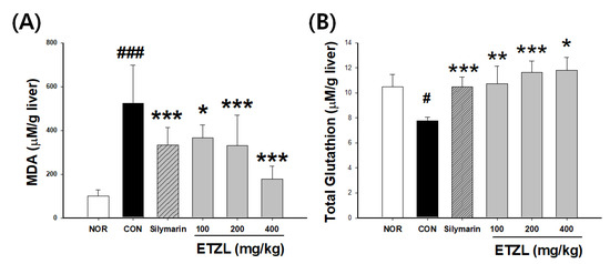 3.5. Effects of ETZL on Hepatic MDA & GSH