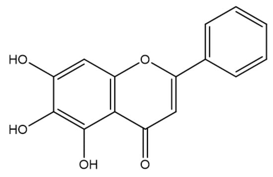 Herbal antioxidants are attractive therapeutic alternatives for preventing or treating acute liver injury due to their higher efficiency and low incidence of adverse effects []. Baicalein (5,6,7-trihydroxy-2-phenylchromen-4-one; Figure 1), is a nature product from the root of Scutellaria baicalensis. It has many beneficial pharmacological activities, including anti-inflammatory, anti-oxidative, anti-macrobiotic and immuno-regulatory []. Baicalein has a time-honored place in Asian traditional medicine for treating liver, renal and cardiovascular diseases [,,]. Available evidences suggests that the baicalein supplementation can attenuate cisplatin-induced hepato- and nephro-toxicity, via the attenuation of oxidative stress, apoptosis, and inflammatory responses [,]. A high-throughput screen from a natural product library containing 1130 chemicals showed that baicalein had highest inhibitory effects on acute liver injury induced lipopolysaccharides (LPS)/Dgalactosamine (D-gal) in vitro []. In the present study, we investigated the protective effects of baicalein supplementation on CCl4-induced acute liver injury and the underlying molecular mechanisms both in vivo and in vitro. We assume that inhibition of oxidative stress, inflammation, and arachidonate 12-lipoxygenase (ALOX12) and NF-κB pathways contributed to the protective effect of baicalein on carbon tetrachloride-acute induced liver injury.