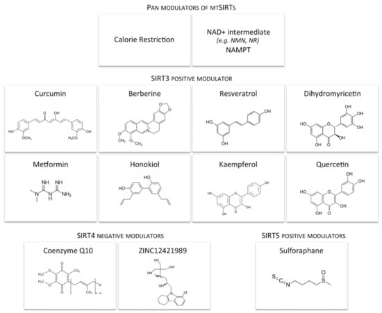 Based on basic research and pre-clinical studies, the modulation of mtSIRTs may be helpful for the improvement of fertility potential. In this regard, here, we report current knowledge about potential regulators of mtSIRTs (Figure 7), taking into account that biochemical activators of mtSIRT are not available.