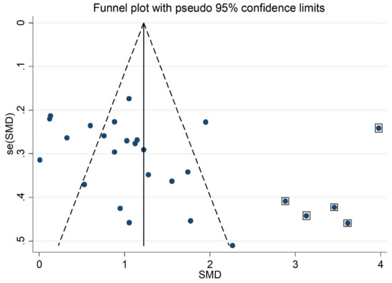 - Sterne, J.A.; Egger, M. Funnel plots for detecting bias in meta-analysis: Guidelines on choice of axis. J. Clin. Epidemiol. 2001, 54, 1046–1055. [Google Scholar] [CrossRef]