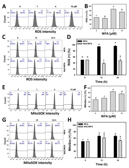 3.5. WFA Produces ROS and Superoxide Stresses in Bladder Cancer Cells