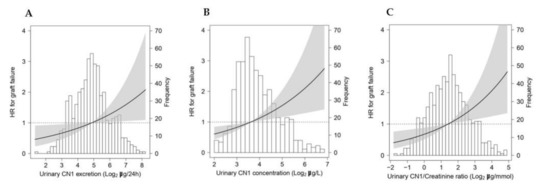 3.4. Urinary CN1 Is Associated with High Risk of Graft Failure in KTRs