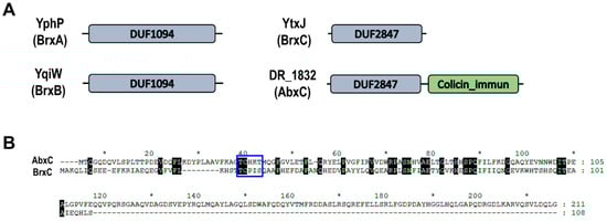 | DR_1832 | putative homolog of BrxC (YtxJ) | 24 kDa | 13 | 1 | |