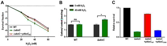 3.3. AbxC Exhibits H2O2 Scavenging Activity