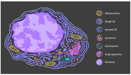 The endoplasmic reticulum is the largest organelle in cells made up of an extensively folded tubulovesicular membrane network matrix (Figure 2). It has several essential functions such as Ca2+ storage, lipid metabolism, and protein synthesis [28]. In fact, it is the principal site for synthesis of proteins, post-translational modification, folding, and assembly of newly synthesized protein [29].