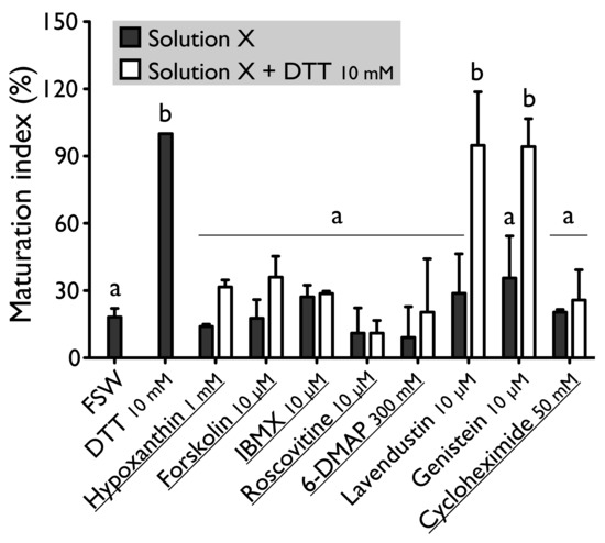 33]. In asteroids, DTT has been suggested to mimic 1 MeAd (i.e., the natural asteroid MIS) whose action increases the sulfhydryl concentration (i.e., R-SH) at the surface of oocyte before maturation [