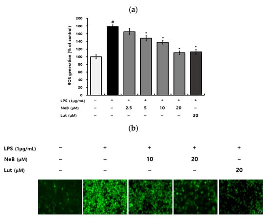 3.4. NeB Inhibits the LPS-Induced Generation of ROS