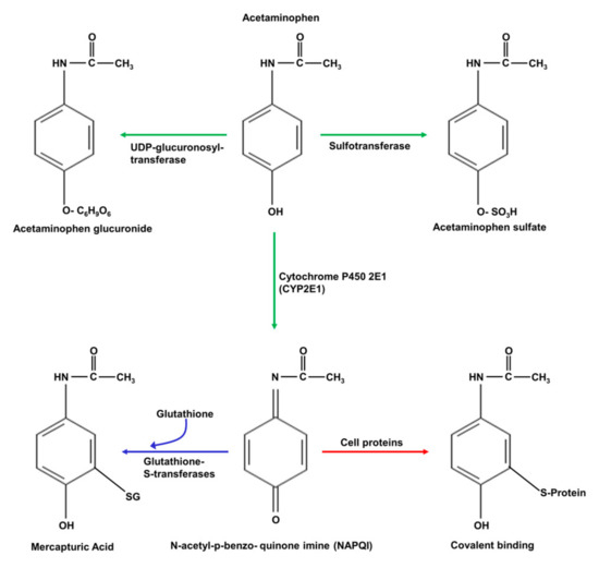 - Athersuch, T.J.; Antoine, D.J.; Boobis, A.R.; Coen, M.; Daly, A.K.; Possamai, L.; Nicholson, J.K.; Wilson, I.D. Paracetamol metabolism, hepatotoxicity, biomarkers and therapeutic interventions: A perspective. Toxicol. Res. 2018, 7, 347–357. [Google Scholar] [CrossRef] [Green Version]