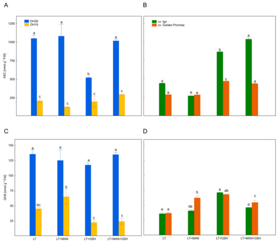 | LT+MAN+GSH | 25 ± 4 | 58 ± 3 ab | 12 ± 8 c | |